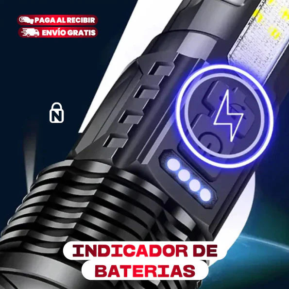 Fabricada con aleación de aluminio de grado militar, esta linterna es resistente al agua y a los golpes, lo que la convierte en la opción ideal para condiciones extremas. No importa si estás en una excursión bajo la lluvia o en una situación de emergencia, su diseño robusto y duradero asegura que siempre tendrás una fuente de luz confiable. Además, con su función de zoom ajustable y múltiples modos de iluminación, podrás adaptarla a cualquier necesidad.
